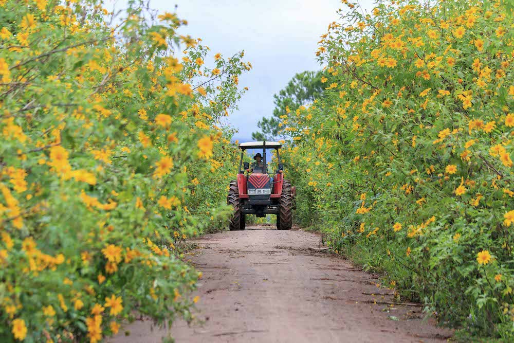 Highlights: Wild sunflowers on Ta Nung Pass often grow in large bushes along the road, mixed with the lush green coffee plantations of the local people. This is one of the closest suburban routes where you can see the flowers in full bloom.