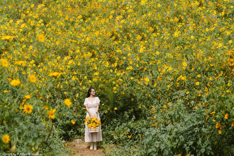 Highlights: The sunflowers in this area don't grow on large hills but rather dot the roadside, reflecting on the tranquil surface of Tuyen Lam Lake. The scenery has a very "poetic" beauty, perfect for couples and families.