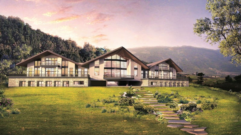 The alpine course is sprawled across 2,100 acres of a hilly pine tree forest with a 450-acre natural spring-fed lake at its center. The elevation change between holes makes this a cart only course, the abundance of fresh water streams, strategically placed bunkers, rice paddies, lakes, pine trees and natural obstacles makes for interesting game play. Additional local flowers and bushes have been planted to frame each hole and provide unique challenges and different scenic views.